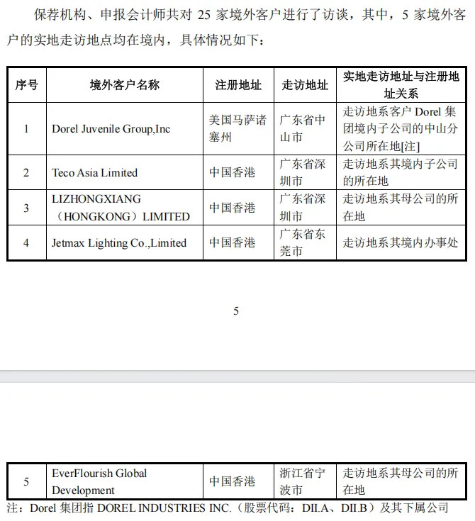 对于DorelJuvenileGroup,Inc.等五家境外客户的境内走访,中介机构的核查逻辑并非简单依据法律注册地,而是聚焦于实际业务对接环节。根据觅睿科技的说明,接受访谈的人员均是直接负责与觅睿科技日常联络、订单执行及沟通协调的关键人员。这些人员虽然隶属于境外客户的境内子公司、分公司或办事处,但其职权范围完全覆盖了与觅睿科技的合作事宜,对双方交易的历史、合同条款、物流结算及产品细节有着第一手的、深入的了解。